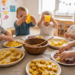Preparación de recetas sencillas con miel (panecillos, galletas o caramelos), trabajando la alimentación consciente, los usos de la miel y la manipulación básica de alimentos.